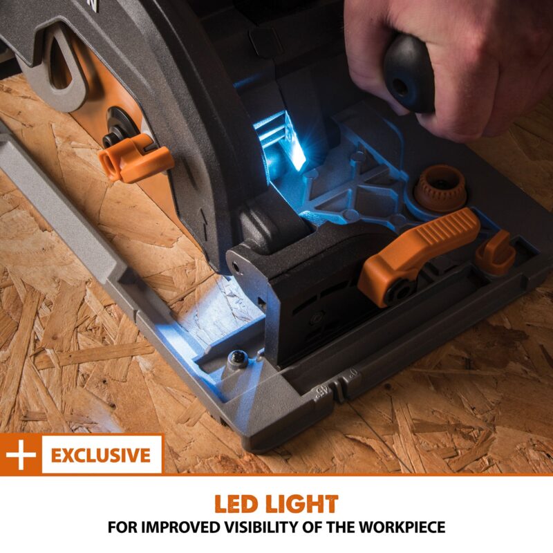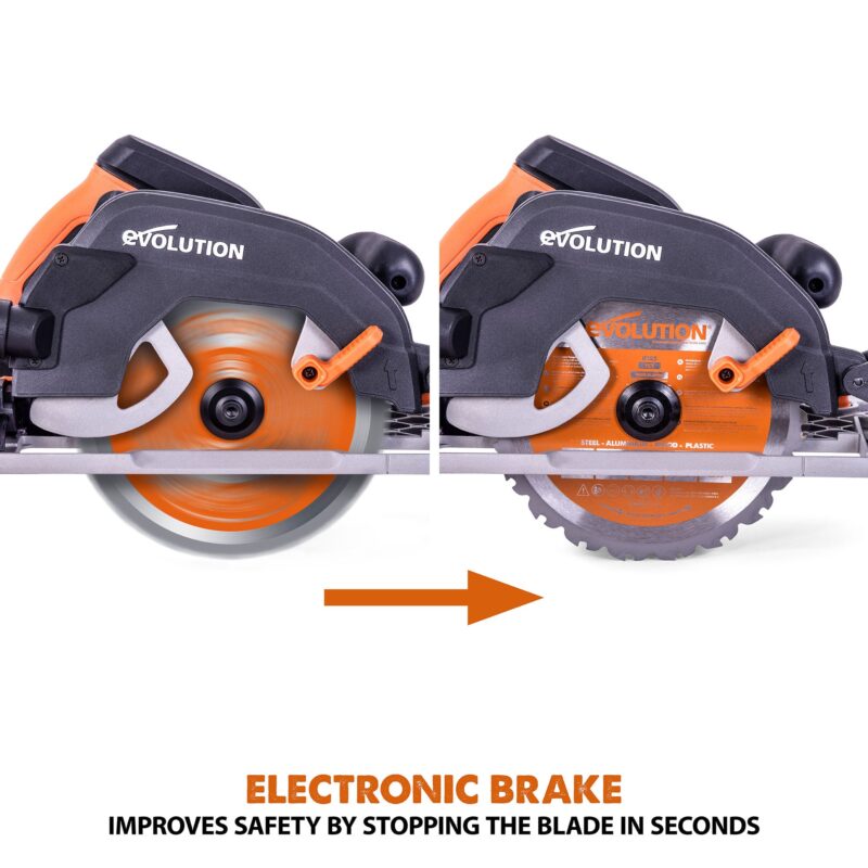 The ultimate multi-material cutting circular saw. Designed by the professionals for the professionals. The R185CCSX+ model gives you extra functionality, extra support and extra reach than any other Evolution circular saw in the family. Integrated LED light, channelled air-flow, 13 ft cable, storage bag and compatibility with Evolution’s 4 ft 7 in track, are just some of the features included in this package. (Track sold separately)
