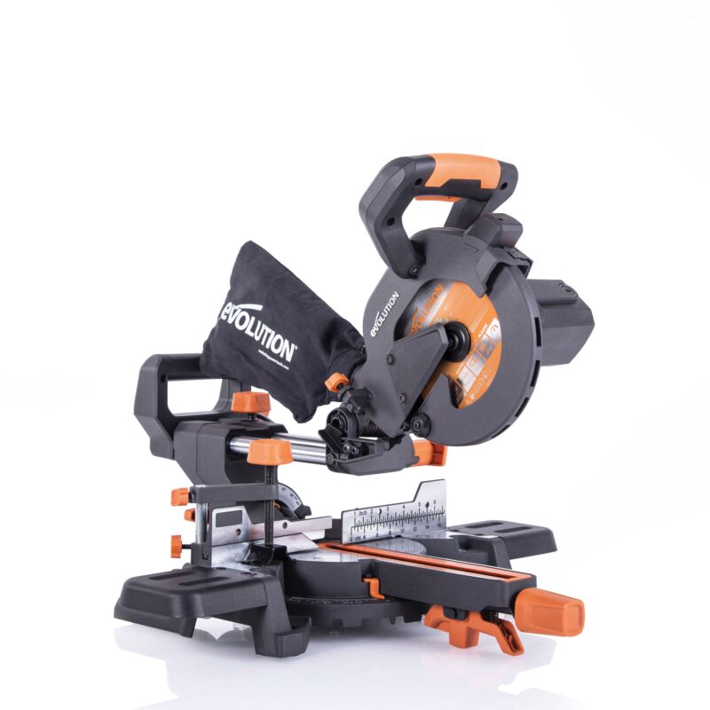 Light-weight, compact and portable miter saw with all the accessories you need to get the job done. Equipped with a 7-1/4inch 20 tooth multi-material cutting, this sliding miter saw shines when cutting 6mm thick mild steel. Features a 50 – 50-degree rotary base for miter and compound cutting and an adjustable depth stop with 8-1/4 inch slide makes light work of trench cutting.
