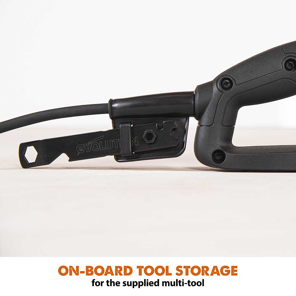 - On-board Tool Storage. One multi-tool for all machine adjustments with dedicated onboard storage.